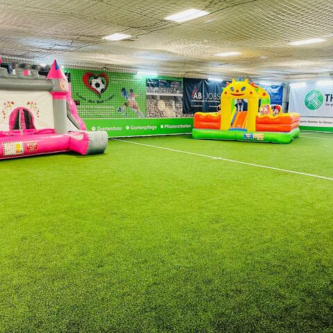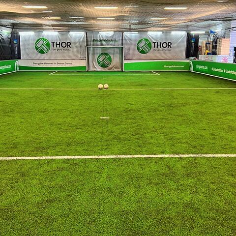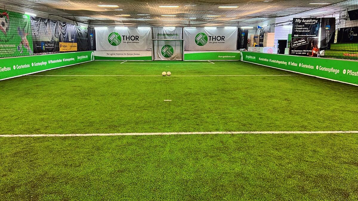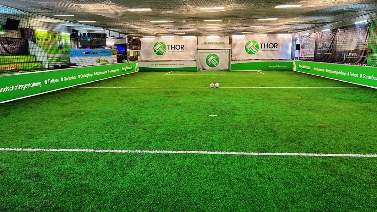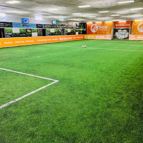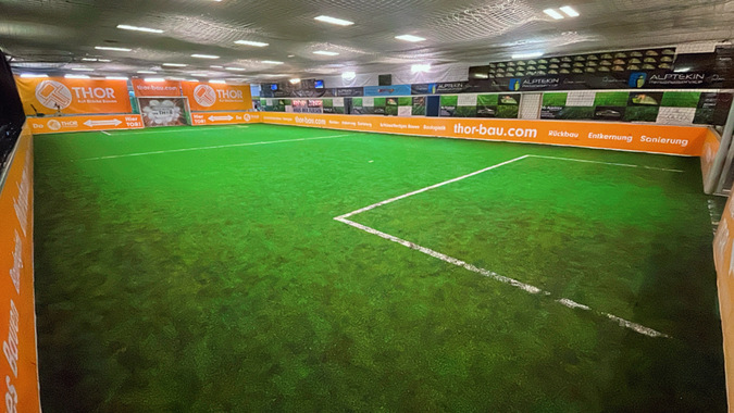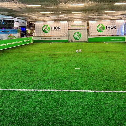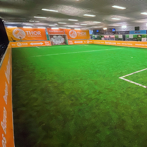 Unsere beiden Soccer-Courts haben jeweils eine Fläche von ca. 30 x 15 Metern und sind mit einem umlaufenden Bandensystem sowie einer kompletten Netzumrandung ausgestattet. Das sorgt für schnellen Spielfluss, technische Raffinesse und durchgehende Action – denn der Ball bleibt permanent im Spiel. Gespielt wird auf einem hochwertigen Kunstrasen, der nicht nur professionelle Bedingungen bietet, sondern auch gelenkschonend ist.